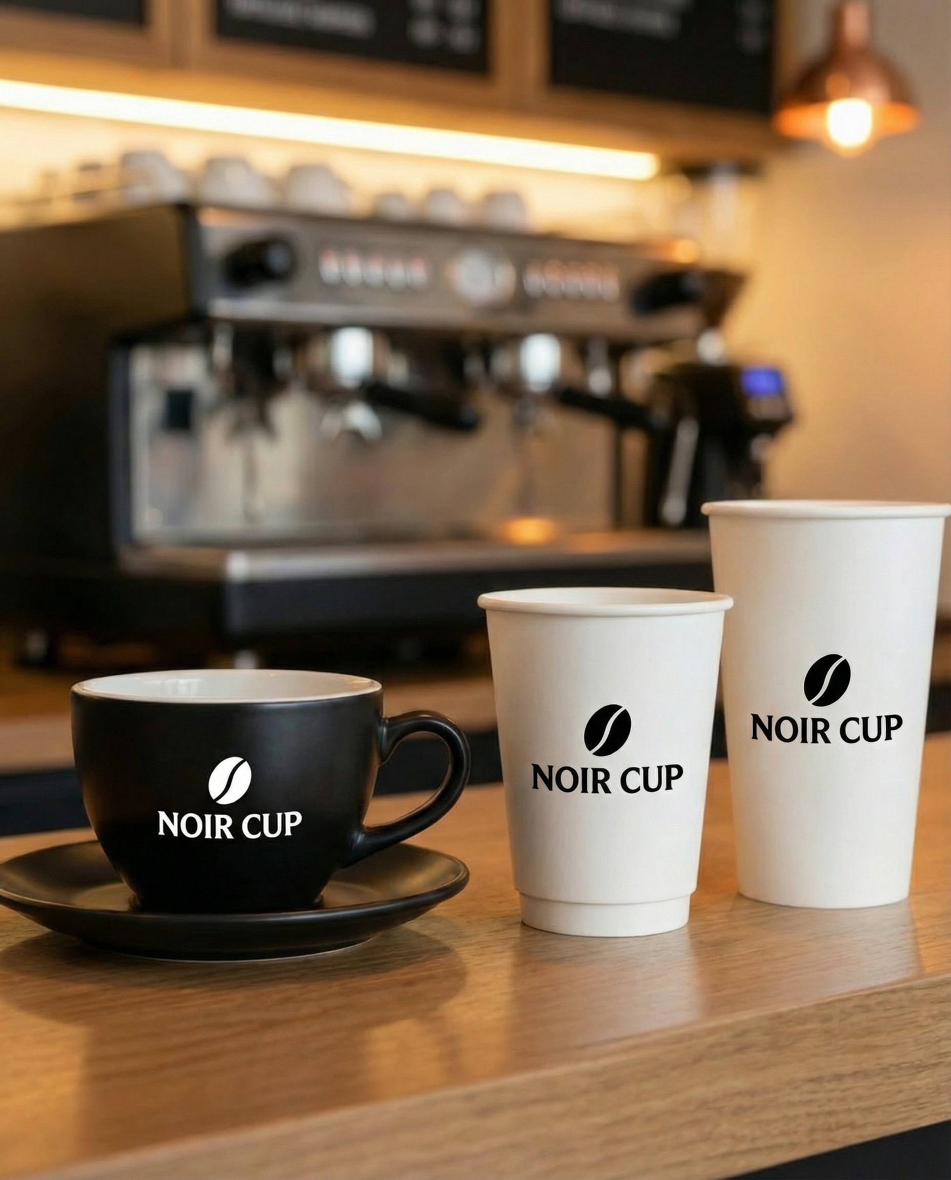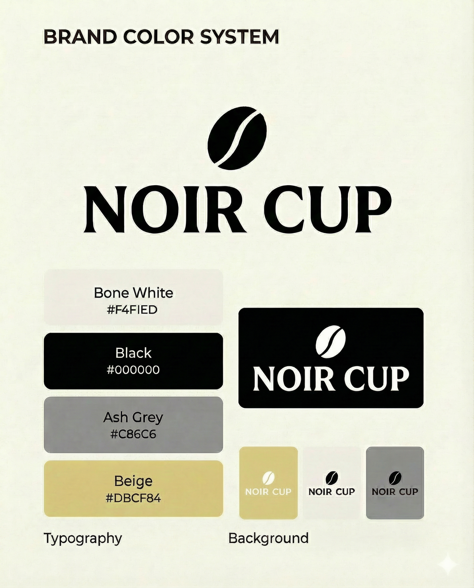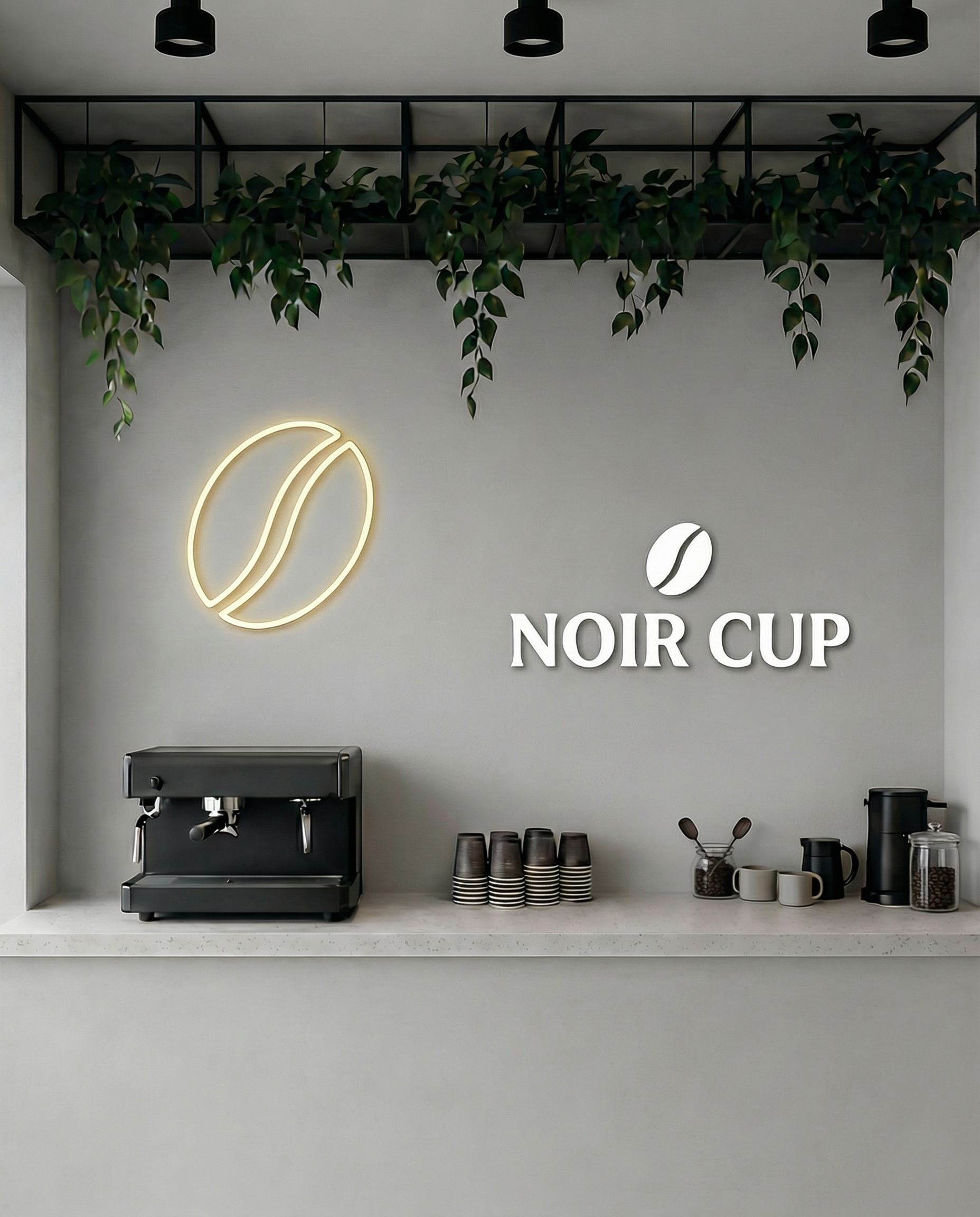 NOIR CUP is a modern, design-led coffeehouse chain built around clarity, calm, and craft. I developed a minimalist visual identity that feels premium yet approachable—anchored by a simple bean mark, confident typography, and a restrained palette of black, white, and warm sand tones. The system was designed to scale across multiple locations and touchpoints, keeping everything consistent from the first glance to the final sip. I applied the identity across packaging (whole-bean bags and boxes), takeaway cups, ceramic mugs, and staff uniforms, creating a cohesive world that’s sleek, contemporary, and instantly recognizable. The result is a brand that feels quiet but bold—clean, stylish, and built for the rhythm of the city.